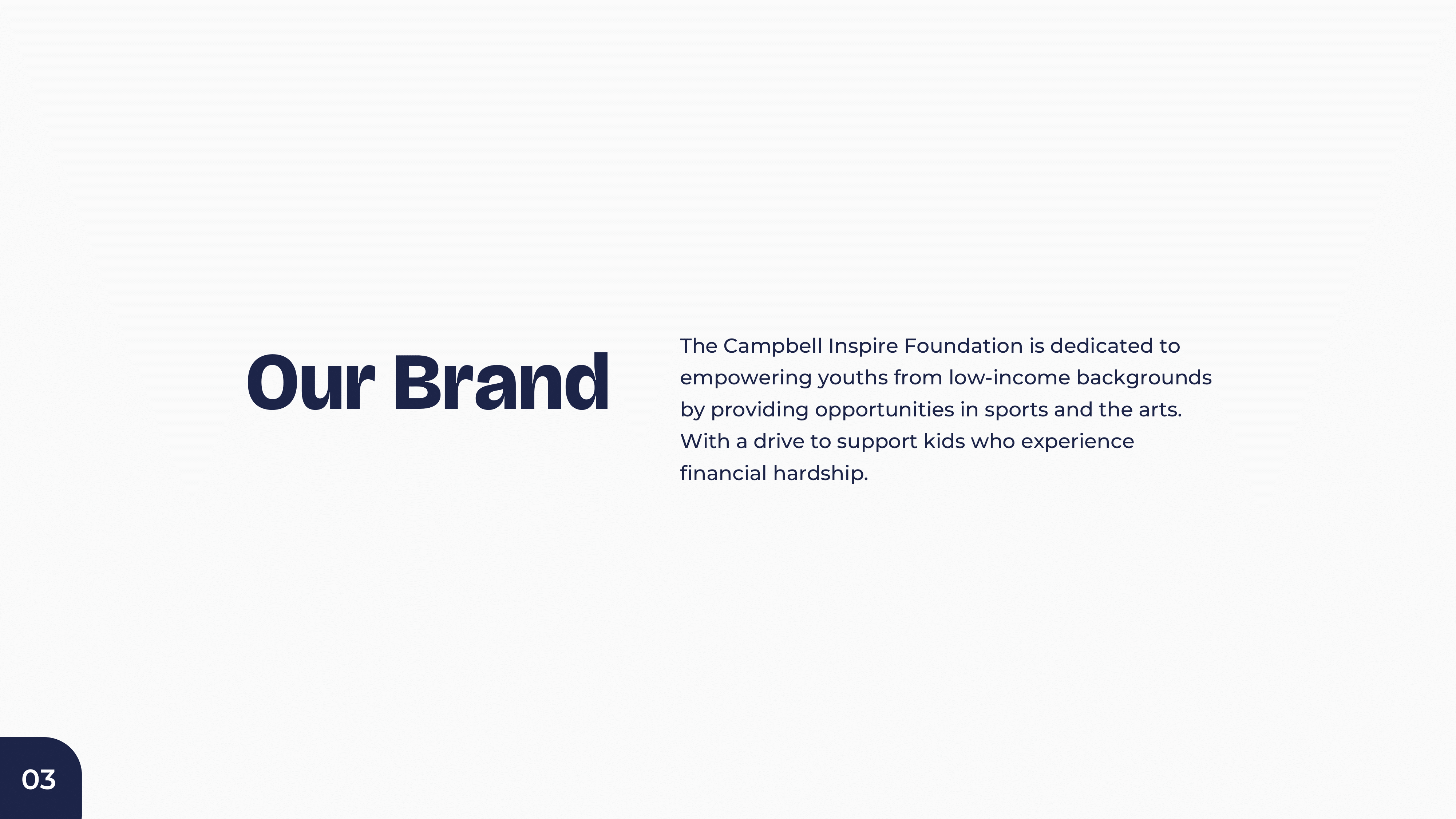 Complete brand identity system for a foundation dedicated to inspiring and empowering communities. A visual language that communicates hope, impact, and transformation.